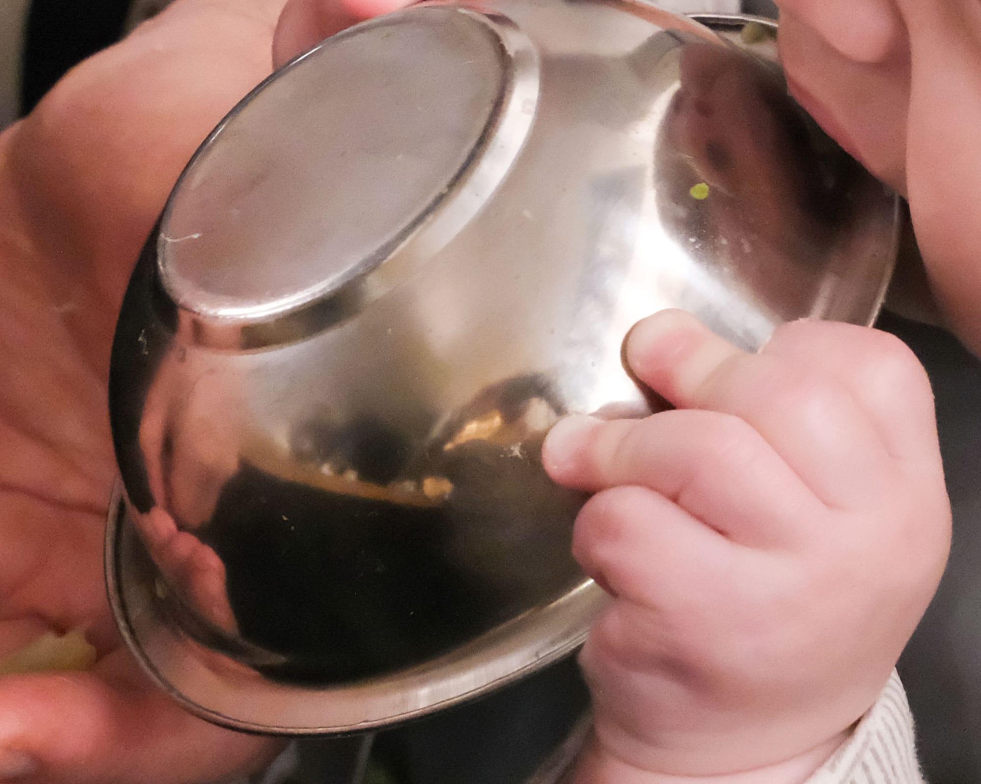 Early days, but it is showing some signs of promise. We have not been militant, and sometimes we do spoon feed him when we want to make sure he actually tries something, and when we need to ensure exposure to allergens. He does prefer picking up the spoon himself, and while he’s good at getting it to his mouth, the movement usually rotates it upside down. The spoon makes it to the mouth but the food often doesn’t. He’s often more interested in the plate and bowl than the contents, but he’s engaging with the process.